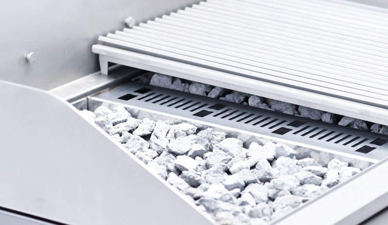 Ausstattung: 10 kg Lavasteine, 2 Grillroste